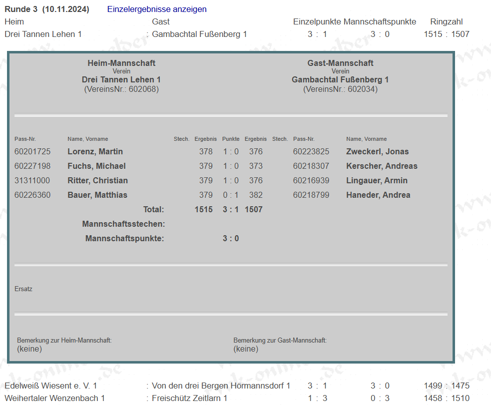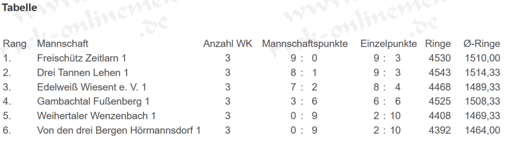Unsere 1. Mannschaft Luftgewehr verliert mit 1:3 in Lehen. Lediglich auf Position 4 holen wir einen Punkt mit 382 zu 379.