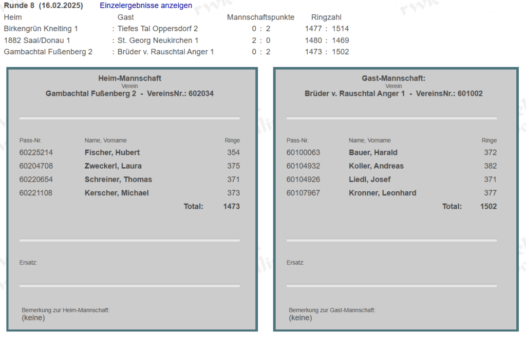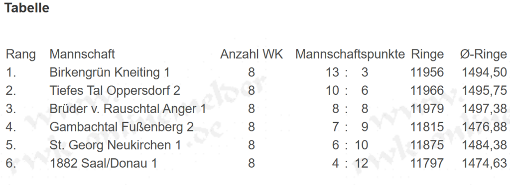 Gegen stark aufschießende Schützen aus Anger gab es diesmal nichts zu holen für unsere 2. Mannschaft Luftgewehr. Mit 1473 zu 1502 nehmen die Gäste die Punkte mit. Durch den Sieg von Saal müssen wir den Klassenerhalt noch etwas vertagen.