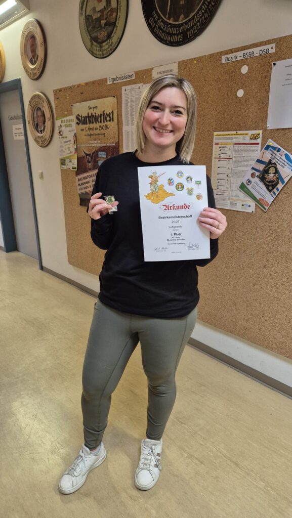 In der Luftpistole landete Veronika Klein in der Damenwertung mit 351 Ringen auf Platz 6. Nick Radlmeier bei den Herren I mit 339 Ringen auf Platz 41 und Armin Lingauer (Herren II) wurde 19. mit 350 Ringen. In der Schülerklasse LP schaffte Jonas Neßlauer mit 148 Ringen den 4. Platz und freut sich über eine Urkunde.