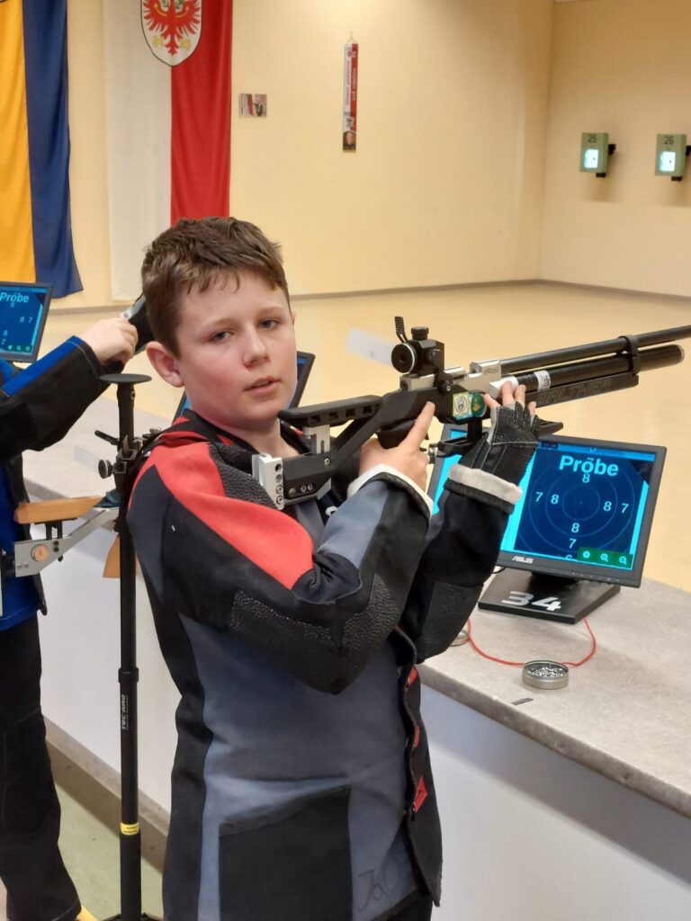 Den Abschluss der Bezirksmeisterschaft bildeten die Schüler und Jugendklassen Luftgewehr. Hier waren wir jeweils mit einer Mannschaft vertreten. Die Schülermannschaft mit den Schützen Marie Landstorfer, Anna Winter und Korbinian Winter erreichte Platz 2 und ist somit Vize-Mannschaftsmeister. Im Einzel bedeutete dies 180,3 Ringe und Platz 15 für Marie, 176,1 Ringe für Anna (Platz 23), aber den größten Erfolg konnte Korbinian Winter verzeichnen: Mit 189,8 Ringen holte er sich souverän den Bezirksmeistertitel mit dem Luftgewehr bei seiner ersten Teilnahme. Korbinian ist damit Doppelbezirksmeister, da er zu Beginn der Meisterschaften auch den Lichtgewehr Titel geholt hatte.