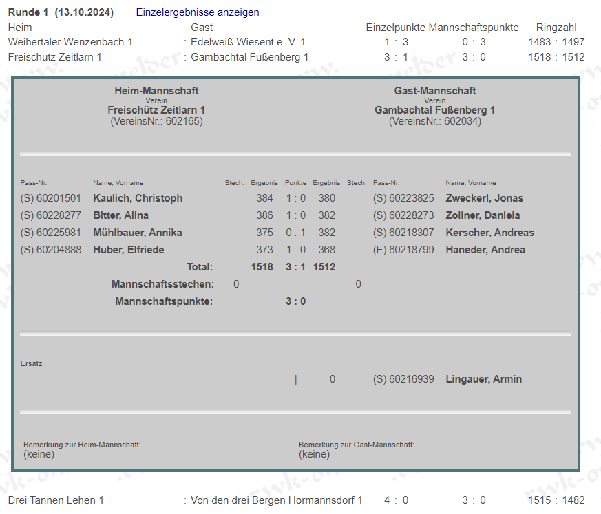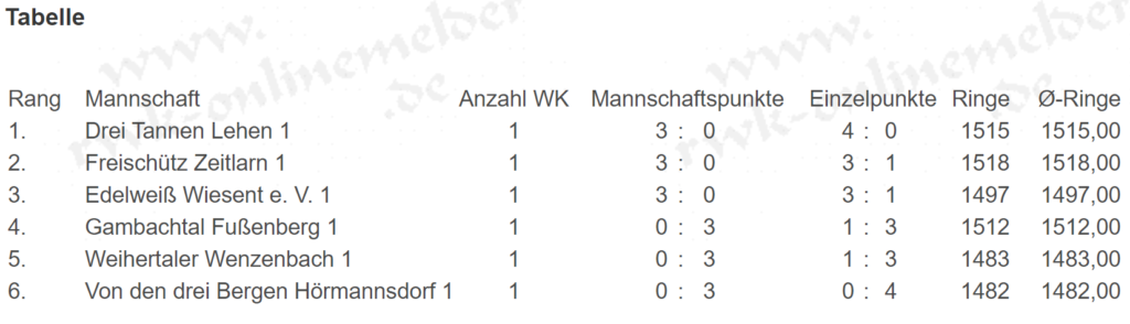 Die 1. Mannschaft Luftgewehr verliert den Auftakt gegen Zeitlarn mit 1:3. Trotz guter Einzelergebnisse konnten wir lediglich auf Position 3 punkten. In der Tabelle starten wir damit auf Platz 4.