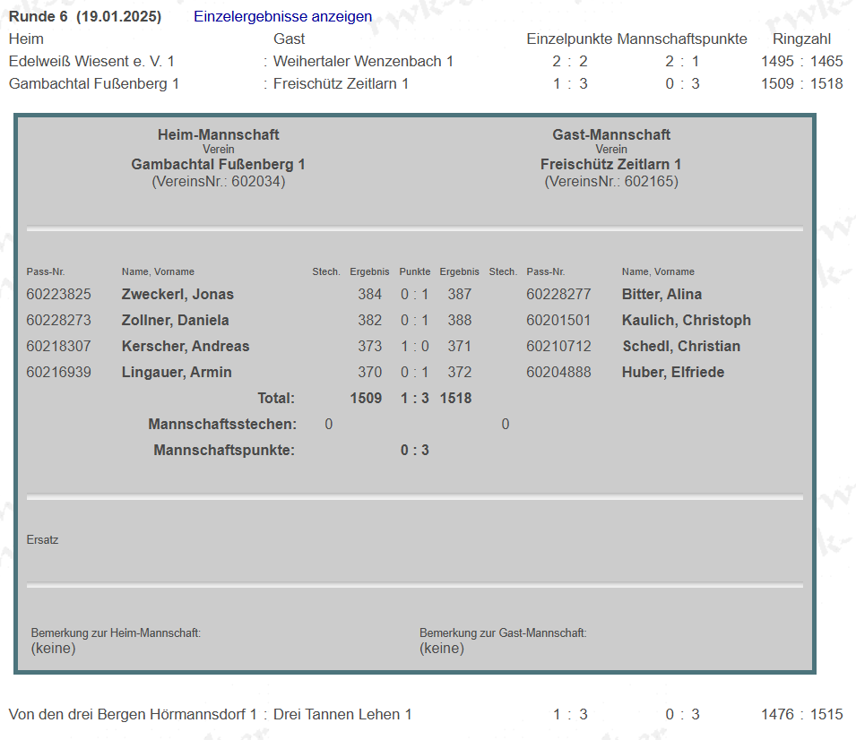 Wie schon in der Hinrunde hagelt es eine 1:3 Niederlage gegen Zeitlarn. Wir punkten lediglich auf Position 3 und hängen in der Tabelle weiter auf Position 4 fest.
