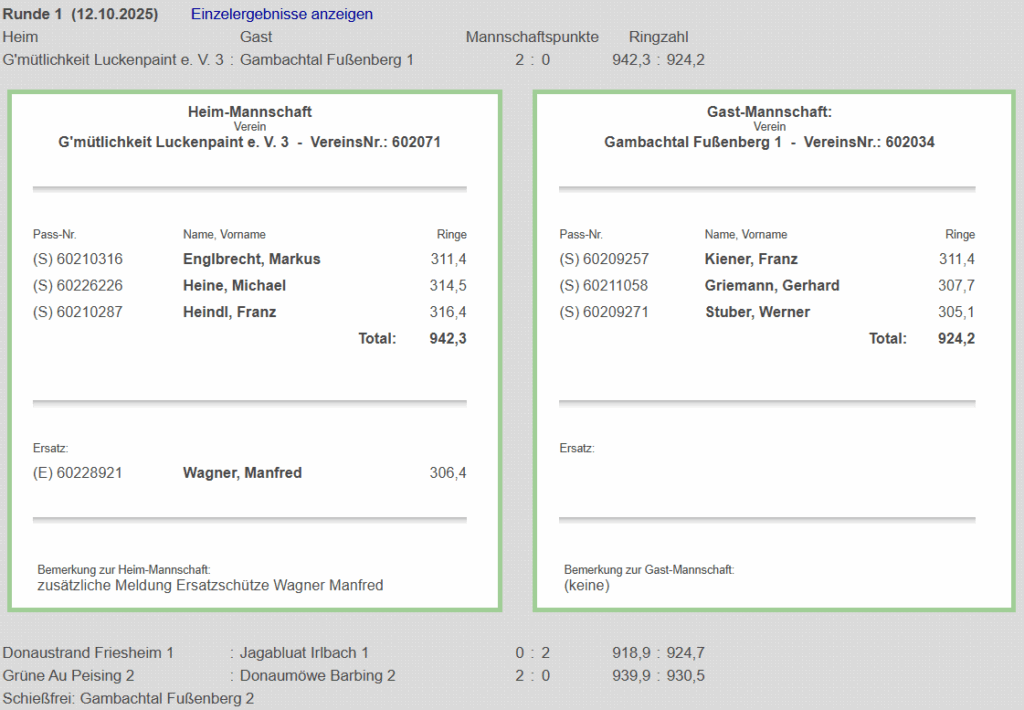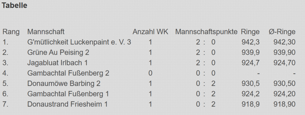 Zum Start der neuen Saison verliert unsere 1. Mannschaft Auflage in Luckenpaint. Mit 924,2 Ringen können wir aber gegen zu starke Gegner zufrieden sein. Die 2. Mannschaft in der selben Gruppe hatte ihren Aussetzer gleich zum Auftakt.