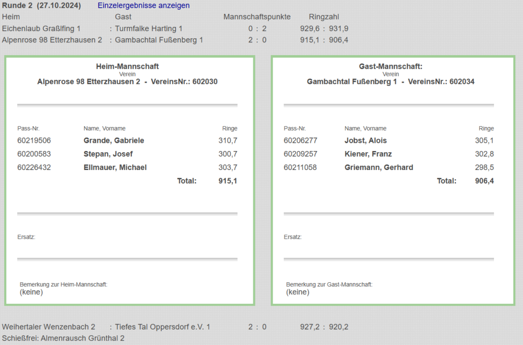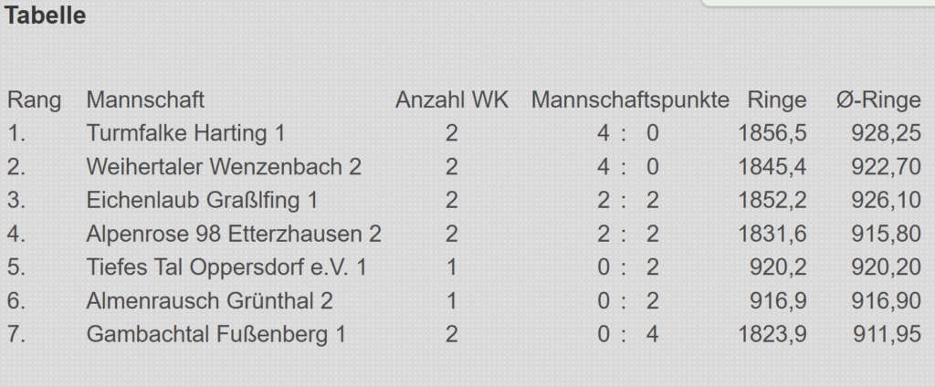 Im 2. Wettkampf der Saison war es die 2. Niederlage für die 1. Mannschaft unserer Aufleger. 906,4 zu 915,1 Ringe heißt es am Ende für Gastgeber Etterzhausen. Mit diesen Ergebnissen wird der Klassenerhalt schwer.