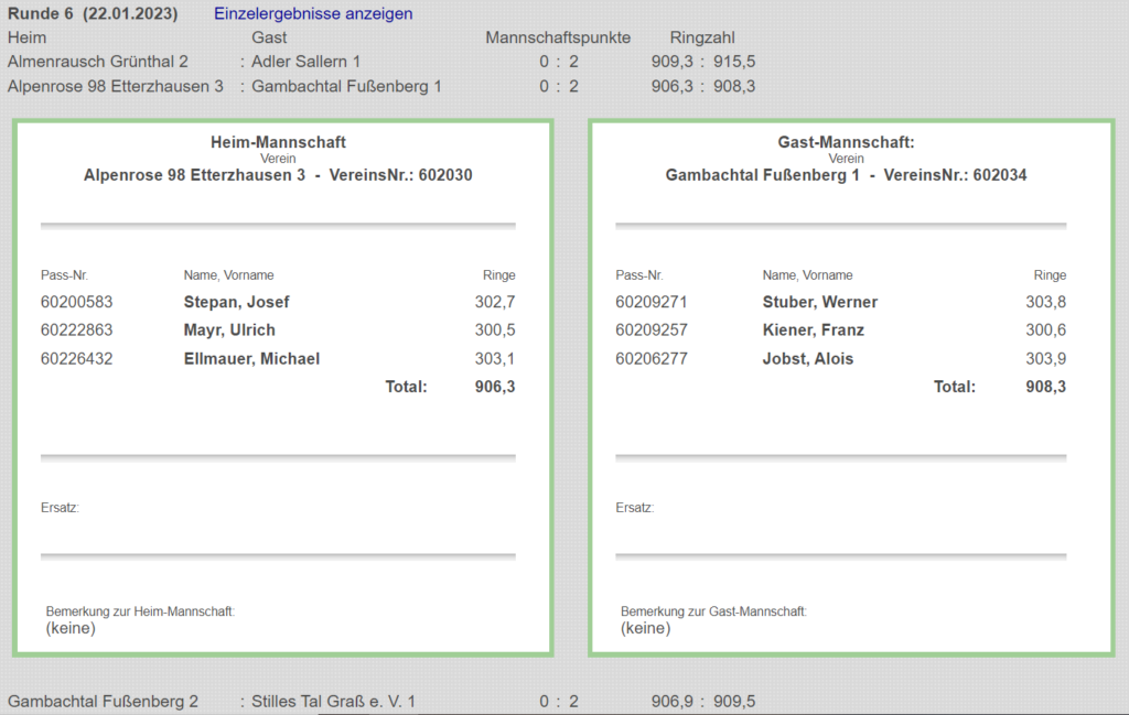 Ohne Bestleistung zu zeigen gewinnt unsere 1. Mannschaft Auflage knapp mit 908,3 zu 906,3 Ringen in Etterzhausen. Die 2 Punkte nehmen wir trotzdem mit und bleiben in der Tabelle an Position 2.