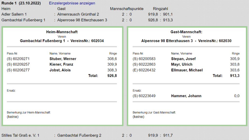 Mit einer geschlossenen und guten Mannschaftsleistung gelingt der 1. Mannschaft Auflage ein Sieg zum Saisonstart. Mit dem Ergebnis von 926,8 Ringen setzen wir uns direkt an die Tabellenspitze.