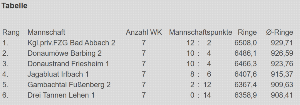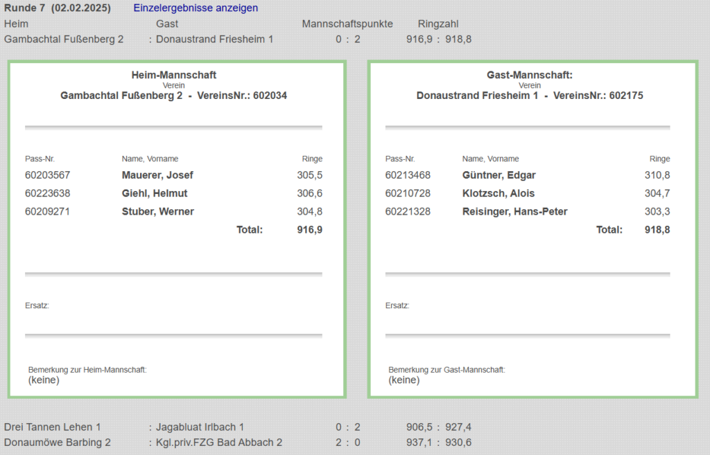 Die 2. Mannschaft Auflage verliert knapp gegen Friesheim. 916,9 zu 918,8 heißt es am Ende für die Gäste. Für uns bleibt es in der Tabelle bei Platz 5.