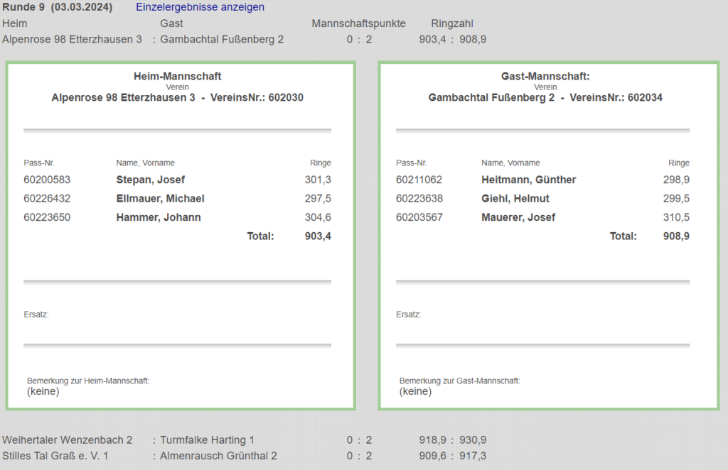 Mit dem 3. Saisonsieg mit 908,9 zu 903,4 Ringen in Etterzhausen entledigt sich die 2. Mannschaft Auflage aller Abstiegssorgen. In der Tabelle bleibt es bei Platz 5.