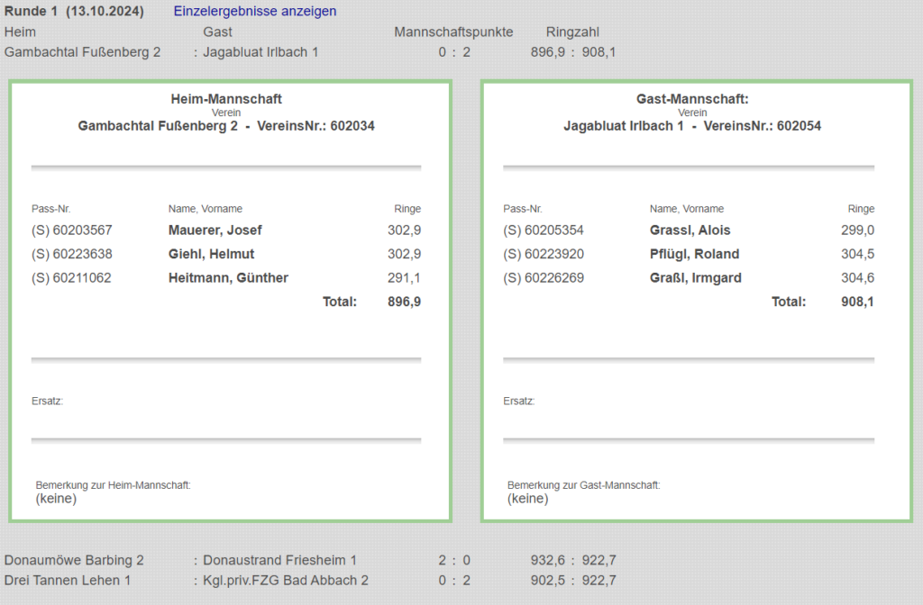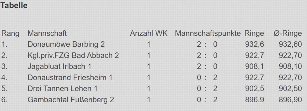 Die 2. Mannschaft Auflage verliert zum Start der neuen Saison mit 896,9 zu 908,1 Ringe gegen Jagabluat Irlbach.