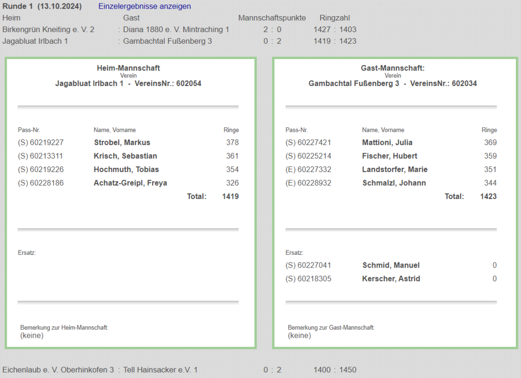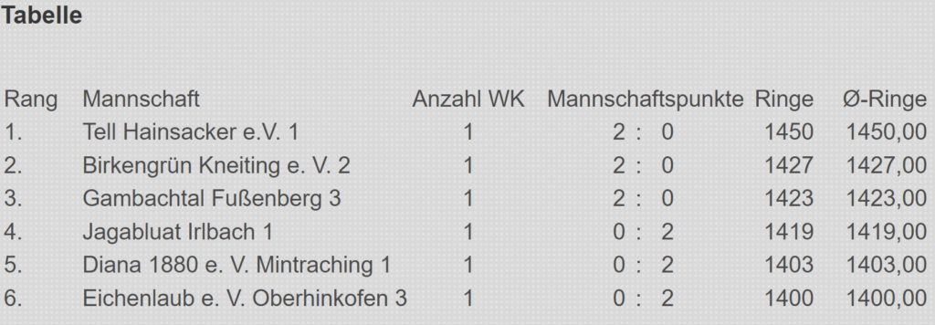 Unsere 3. Mannschaft Luftgewehr gewinnt zum Start der neuen Saison mit 1423 zu 1419 in Irlbach.