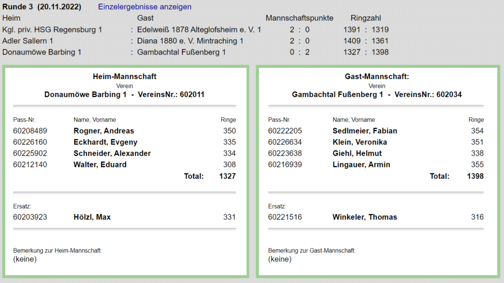 Unsere Luftpistolenschützen gewinnen auch ihren 3. Wettkampf der laufenden Saison und stellen mit 1398 gleichzeitig einen neuen Mannschaftsrekord auf. In der Tabelle steht der 2. Platz zu Buche.