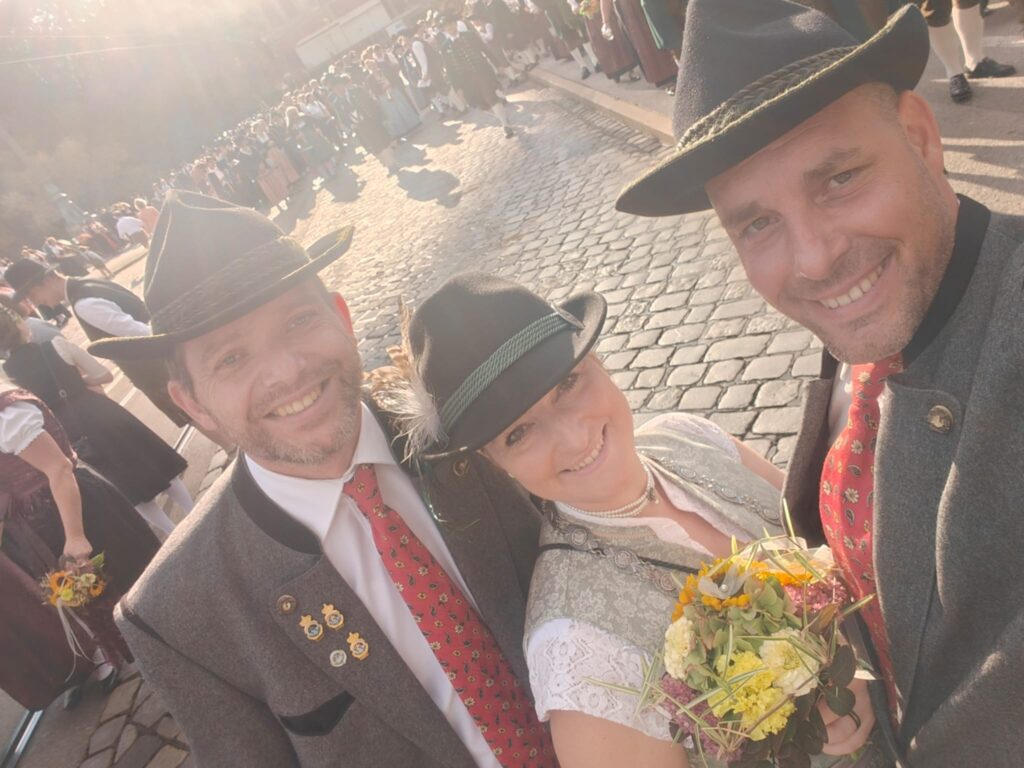 Auch am Oktoberfestzug waren dieses Jahr wieder zwei Gambachtaler Schützen vertreten, auch wenn sie nicht für Fußenberg dabei waren. Christina Schuller durfte für ihren weiteren Verein Thumsenreuth die Königskette des Oberpfälzer Schützenbundes tragen. Ihre beiden Kranzträger waren Armin Lingauer und Stefan Hein.