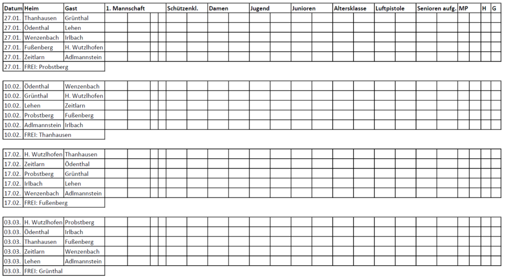 Achtung: Die Senioren Aufgelegt schießen in dieser Saison ebenfalls nur 20 Schuss ohne Zehntelwertung.