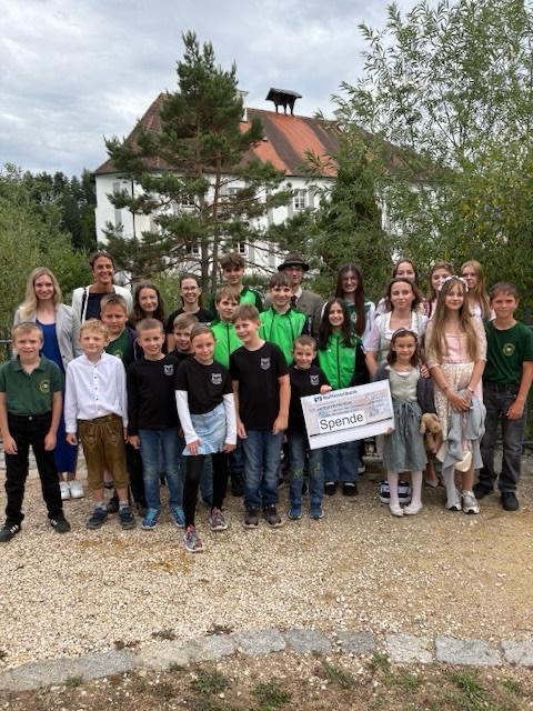 Die Jugend der Sektion Am Wenzenbach bei der Scheckübergabe durch die Raiba