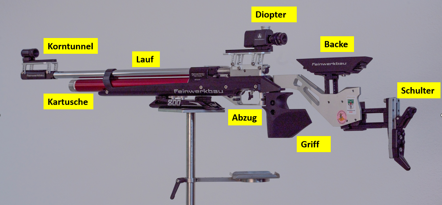 Das Luftgewehr ist das Sportgerät unserer Gewehrschützen. Das Luftgewehr funktioniert, wie die Luftpistole, mit Druckluft. Dabei wird komprimierte Luft aus der Pressluftkartusche bei Betätigung des Abzugs an das Geschoss im Lauf übertragen.
