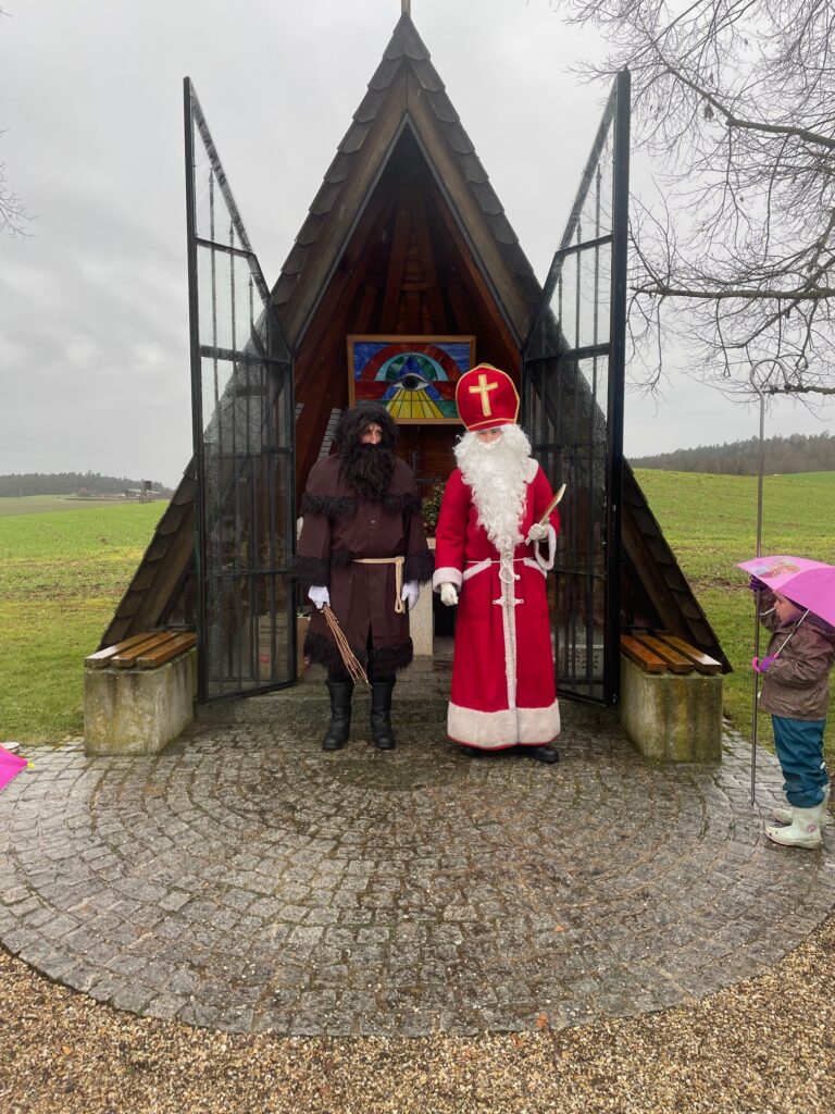 Der Kindernikolaus an der Schützenkapelle trotzte dem schlechten Wetter und lockte einige Familien an. Auch dort brachten der Nikolaus und sein Begleiter Krampus die Kinderaugen zum Leuchten und hatten auch kleine Päckchen für alle Kinder dabei. Die übriggebliebenen Nikolaussäckchen mit Süßigkeiten wurden wie jedes Jahr an das Thomas Wiser Haus gespendet.